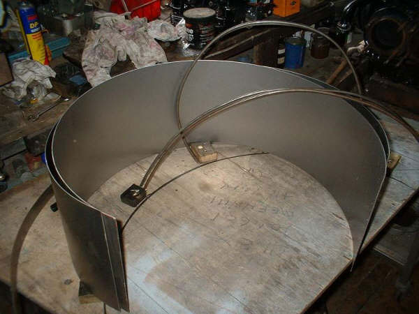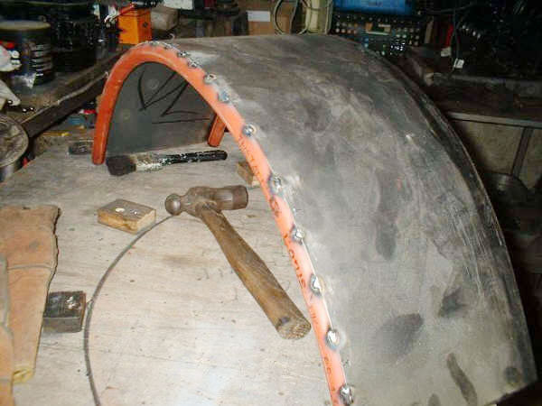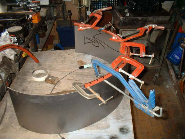 with guard duck-taped to tyre, position stays and tack weld into position. when you happy with position etc fully weld.