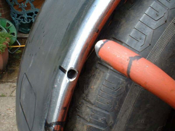 work out where your lights and mudguard stays are going to be mounted and drill 10mm through the tubes so the wiring can be hidden inside of stays, make sure all holes are de-burred, (no sharp edges for wires to get cut on)