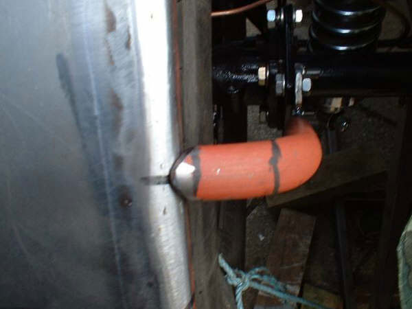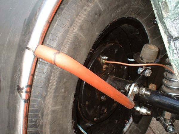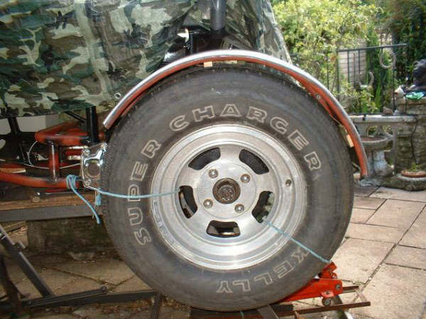 when you happy with this, make spacer to fit between tyre & mudguard ( I use short bits of 2″x1″ duck taped across width of tyre to give me a 1″ clearance) I have close tolerance only because my guards are mounted to axle and move with the wheel/tyre. (I hate those big gaps between guards & tyre that allow the wheel to move up/down when the guard is mounted to frame/chassis, buts thats my personal choice)